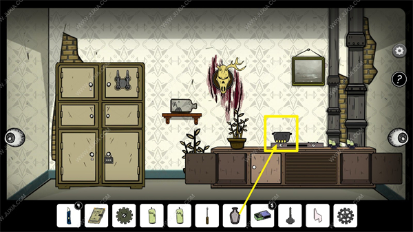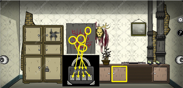 39、按照新得到的线索,打开电视机场景中电视机上方的密码柜,得到【鹿角】。