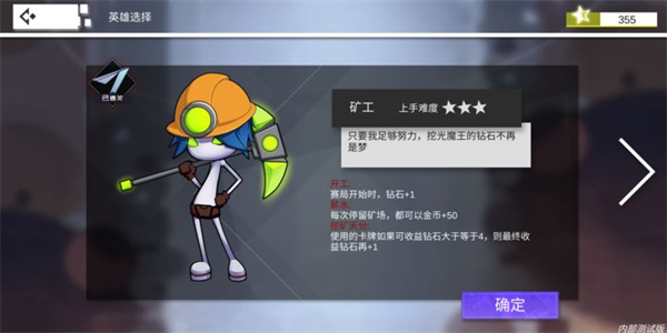 矿工:开局送1钻,卡牌钻石收益≥4则最终收益+1,一般来说用矿工打完一局就够解锁巫师了,矿工优势很直接,就是钻石。(还有个金币加50,触发收益不高,但是矿工的起始位置大部分时候不错,比方说第三关,距离祭坛很近,能有使用金卡的优势。)