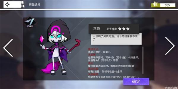 角色优势:能量,控场,过牌,开局1能量和能量站获胜直接+3能量更好的去抢天选,祭坛卡4选1以及消3罪恶更好的过牌和不需要担心用高收益卡罪恶过高,每1点能量+2领地金 可以不担心出高价买地后期没金币的问题控好能量高投入就有高回报,削过一次 ,之前每点能量+10领地金且能量站输了也直接+1能量,唯一一个5天赋的角色,个人认为最好用的角色。