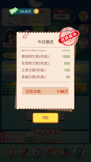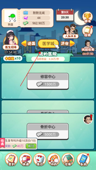 3、当金额足够时,可以升级或是解锁新的诊室