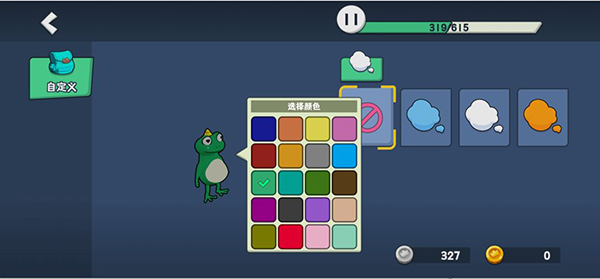 4、点击这个青蛙,跳出装扮界面,你可以在里面更换装扮以及颜色;
