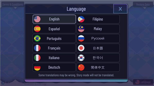 1、打开加查通用正版游戏,点击Language进入语言切换界面;