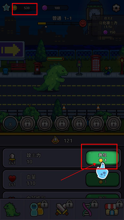 5、主要玩法就是用完成任务领取的金币和水晶升级技能;