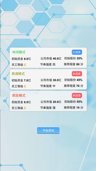 2、选择模式:休闲模式、普通模式、疯狂模式;