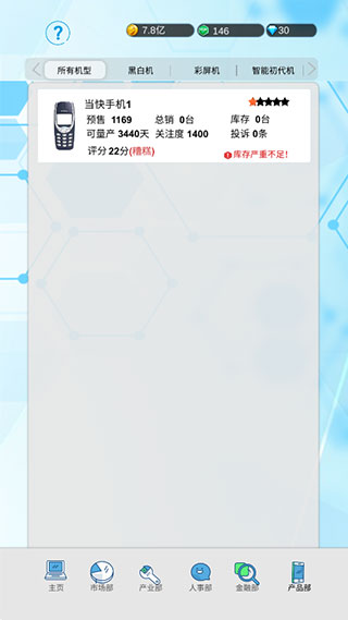 国货当自强,老铁们,有志有梦想的所有人们,快点行动起来吧,来国产手机帝国2024最新版中创造自己的国产手机商业帝国,让自己的手机销量称霸全球,占据世界的制高点,然后在创造成立各种高科技企业,比如人造卫星科技,星链通讯科技,新能源汽车科技,7G通讯科技等等,让你的科技无处不在,让你的科技来改变世界,让世界更加的美好。这款国产手机帝国游戏是以制造自己的手机为主要业务发展线,然后开始投入更多的研发资金。发明和创新新的科学技术,让自己的产品在市场上占据更大的优势,然后逐渐成为市场上神一样存在的产品,让自己产品的销量遍及世界的每一个角落,让地球人都用上的产品,与此同时你的产业还远远不止于此。感兴趣的小伙伴可千万不要错过了哦,快来下载体验吧!