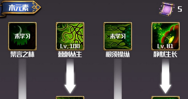 解锁毒元素后学习炽热法球(火木毒),成长神技;如果过不了第三关,也可以用石锈法球(水土金)作为替代品;