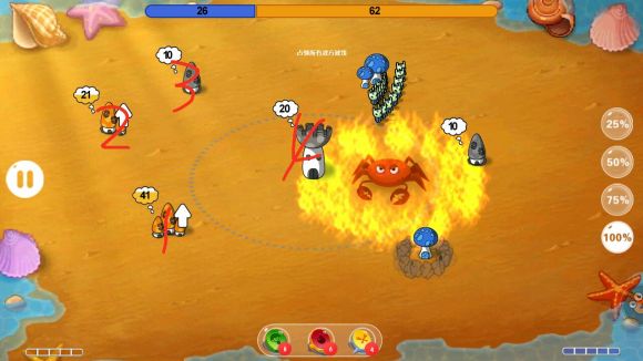 之后运气好的话能1,2,3全部占领,其他两方都快被螃蟹杀光了,之后平推就行或者挂机等着。