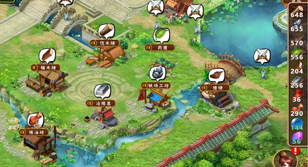 2、当然打造装备的材料是需要掌门去收集的,门派中会有各种产出材料的建筑,同时也可安排弟子去武林中收集珍惜的材料。