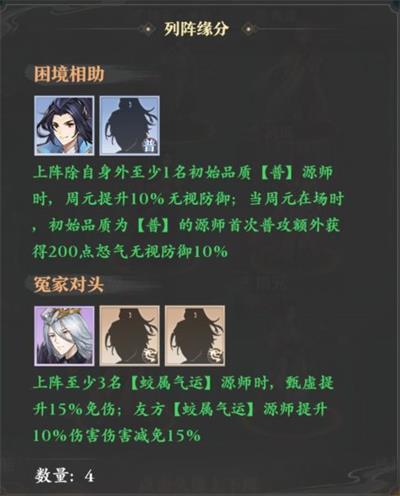 并且周元三星之后就能解锁【混沌神磨·银影】能够让他作为队伍的前排上场,在阵容搭配得当的情况下,可以凭借概率无视对手部分防御的特性获得不俗的输出能力,所以对于前期没有抽到合适的高性价比输出型源师的平民玩家来说,培养周元也是个不错的选择。
