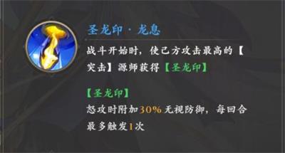 圣周元作为目前破甲队的核心,在当前版本的环境的实战亦或是PK中都是相当吃香的存在,三星即可解锁技能【圣龙印】使全队攻击最高的突击类源师获得30%的怒攻破甲,能够大幅提高团队中主C的伤害,三星即可使用,前期必练的角色之一,前期可以作为辅助或者副C的角色,后期星级拉起来可以真正转为团队的主C。