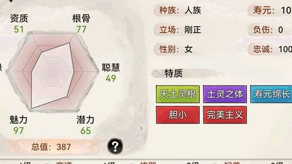 第三:弟子资质影响并不是最大的,关键要看词条天灵根,以及什么圣体之类的可以直接用具体视情况而定。