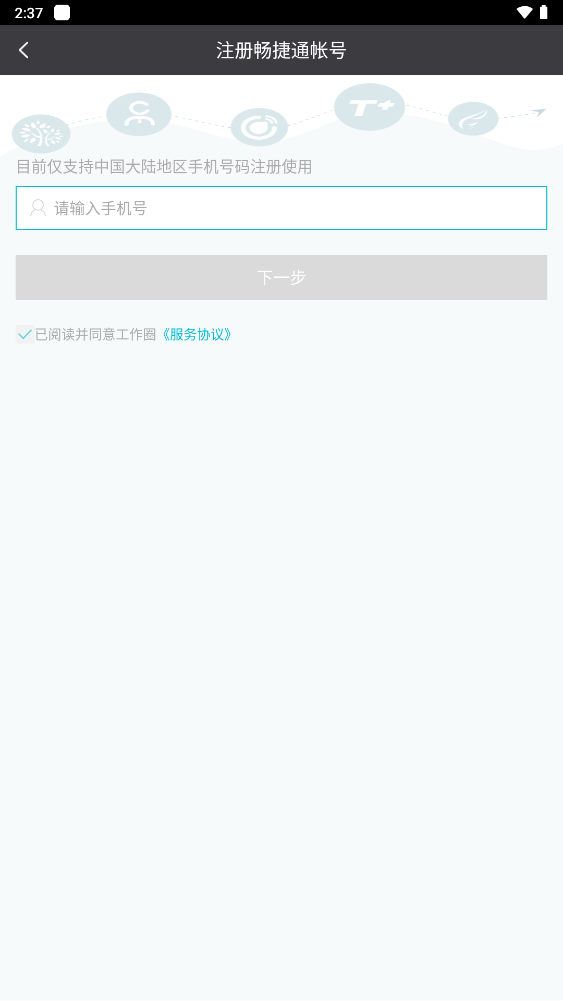 2、输入手机号,系统会自动发送一条验证码。输入验证码即可完成注册。