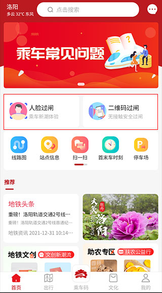1、下载并打开洛阳地铁app(洛易行),在首页点击人脸过闸或者二维码过闸
