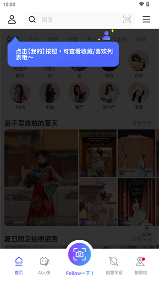 除了构图推荐,Follow相机还为用户提供了大量的创意灵感,无论你是想尝试新的拍摄风格,还是想要为你的摄影作品增添一些艺术感,这里都有你想要的答案。不仅如此,软件还会定期更新各种摄影技巧和教程,让你的摄影技能得到持续的提升,还提供了一个独特的功能——生成二次元场景,只需一键操作,就可以将你的照片转化为具有漫画效果的作品。这种新颖的拍摄方式,不仅能够为你带来全新的视觉体验,还能够让你在社交媒体上脱颖而出。想让手机中出现更多自己美照的小伙伴们,快来当快下载体验吧~