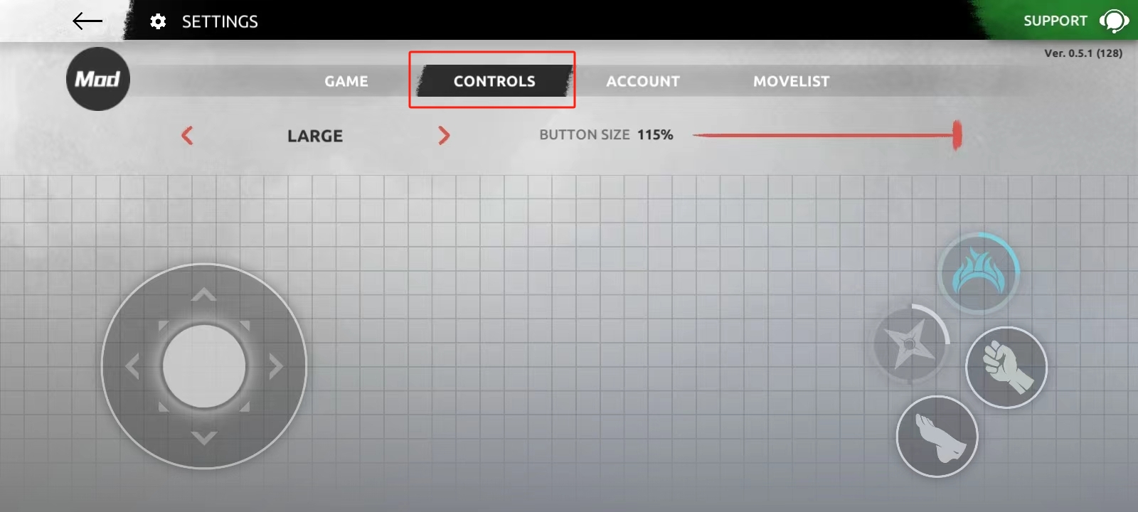 8、点击右上角的设置按钮,点击【CONTROLS】,玩家可以依据自身习惯设置控键的大小,感兴趣的话快来体验吧~