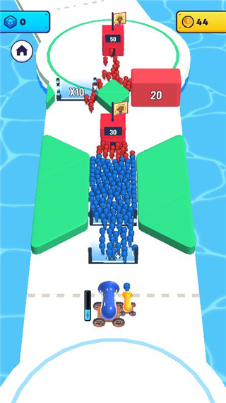 Mob Control炮弹人冲冲冲破解版是一款风靡全球的休闲闯关类小游戏,本作采用了标准的上帝视角,玩家直接从关卡的上面俯视整个场景,简约且清新的游戏画风,造型逼真的树木,动作可爱的火柴人,搭配上动人的背景音效,为玩家塑造出不一样的游戏体验。游戏玩法十分有趣,玩家需要去阻挡敌人抵达火炮身旁的底线,玩家需要在火炮有限火力的助益下,借助倍增的门槛扩充自身的战力,让火柴人的数量成倍增长,达到足以匹敌甚至淹没敌人的地步,当一个个火柴人穿过门槛,变身海量同类前往战斗的时候,那种震撼的场面真的令人十分震撼。受到不同关卡中倍增门槛位置的不同,玩家需要不停的移动火炮到指定位置进行发射,来达成火柴人角色成本增长,可玩性极高。