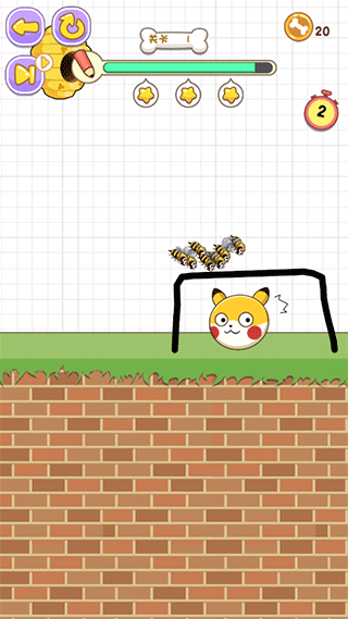最近在手机上发现了一款特别有趣的休闲小游戏叫《神奇脑回路》,玩起来超级解压!这是一款画线闯关类的游戏,主要目标是用黑线保护狗狗不被蜜蜂攻击。玩法看起来简单,但实际操作起来真的很有挑战性。每过一关都需要动脑筋想不同的方法,有时候甚至会怀疑自己是不是还能找到其他的解法。