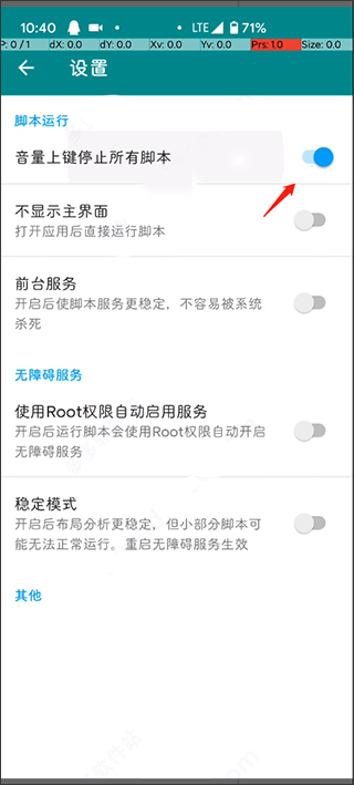 2、进入王者秒换装软件的软件设置,关闭音量上键停止所有脚本