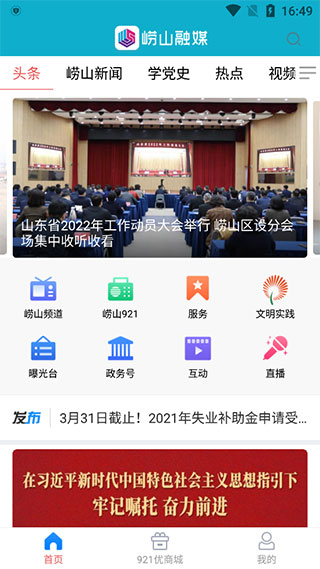 崂山融媒app是由青岛市崂山区融媒体中心专为青岛市崂山区打造的一款新闻资讯综合服务平台,这款软件以提供新闻、政务、便民、党建等多种功能,用户可以直接在软件上查看最新的新闻资讯,还可以在线办理相关业务,为本地用户带来了最便捷的生活服务。该软件不仅及时更新国家、省市区新闻,让崂山区市民及时了解相关动态、大政方针,而且还聚焦解决难题办实事,整合崂山区政务网在线问政相关模块,区职能部门进行全年排期,上线部门与百姓进行互动答疑,还将帮办、公积金社保、个税办理、预约办事、医院挂号、路况查询等常用便民服务融为一体,提供便民服务,让市民畅想智慧生活。而且在此软件中还有新闻直播和慢直播,在用户端呈现图、文、音、视四维直播,直击新闻现场,进行实时播发,还将重点推出VR嵌入等功能,为受众带来极具沉浸感的最新资讯。是青岛市崂山区的百姓生活线上社区。功能介绍