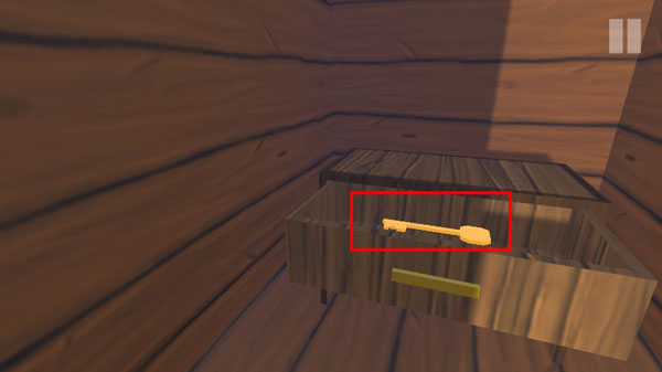 4、横向推开有鸭子图案的门。进入密室,从抽屉里获得钥匙