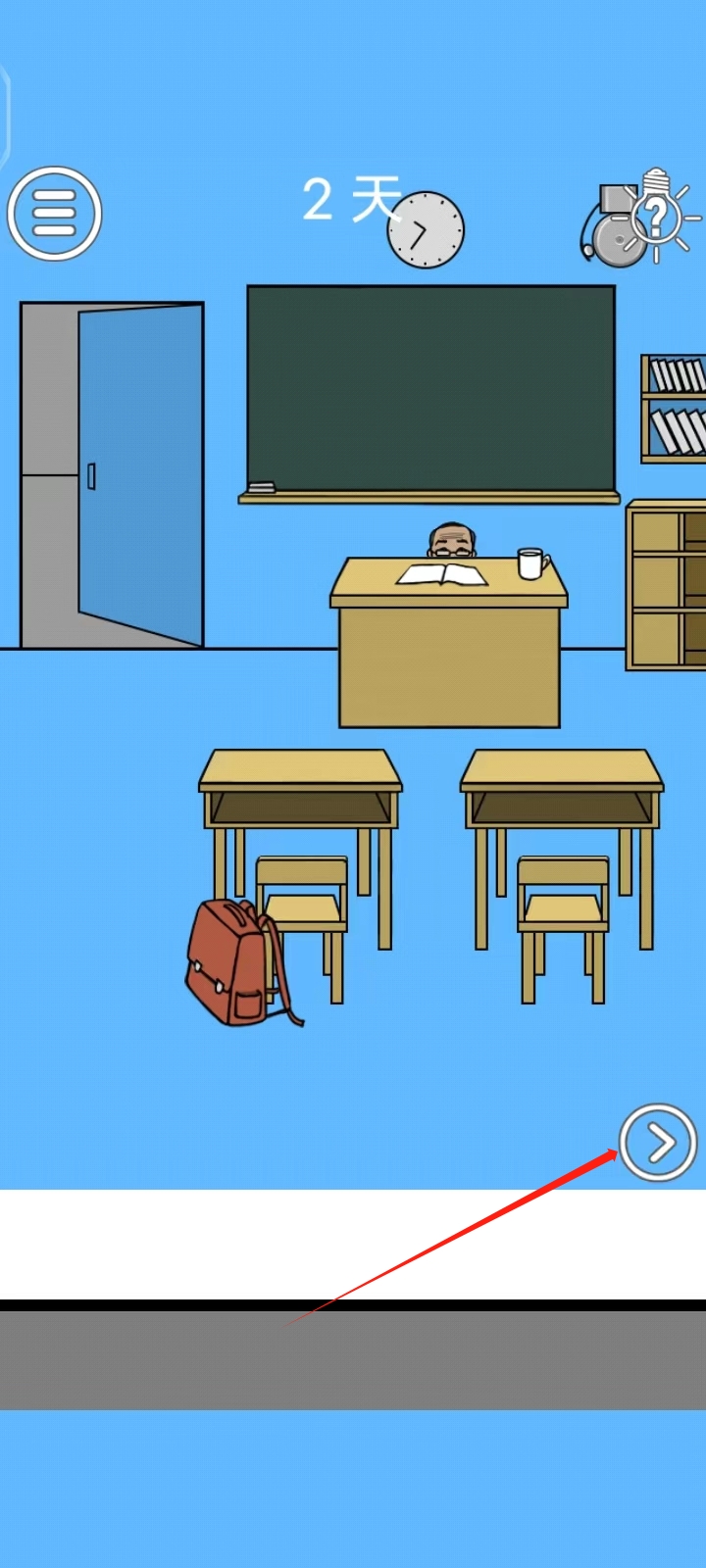 移动到右边,点击地面略显白色的地方可获得一件神秘的隐形衣,然后回到左边,点击一下教室门,等人物出现后快速拖动隐形衣将它套到人物身上,这样就可以在隐形状态逃出教室了。
