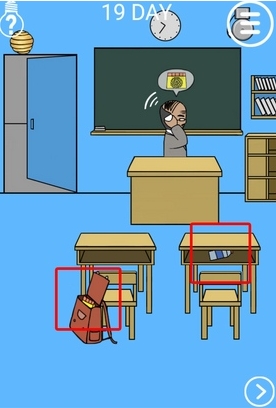 在书包里拿到一代薯条,将薯条拖动拿给旁边的胖子。趁老师火冒三丈的教育死胖子的时候,我们就可以点击门逃离教室了。