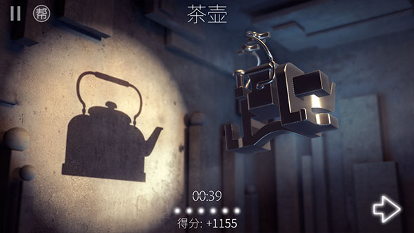 投影寻真游戏的玩法非常简单,玩家需要转动物体,让其在光影下的投影,形成最终的答案,每一关还可以消耗H值,根据给出的提示,完成投影拼图任务。