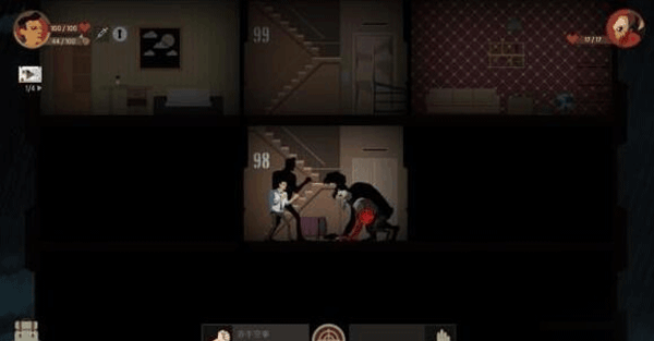3、每层楼都有楼梯和两个房间三块区域,我们需要一一探索,找到资源和线索。