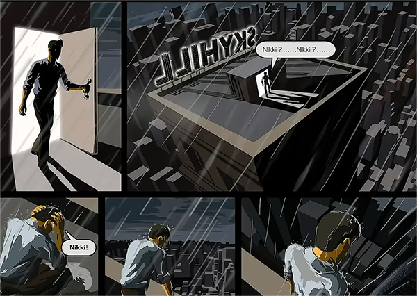 而相对应的结局就是主角杀出重围,打开了酒店的门,却发现自己来到的“一楼”是楼顶……主角恍惚的呼喊着女儿的名字,自然无人应答,而主角也在此时仿佛意识到了什么,企图跳楼自杀