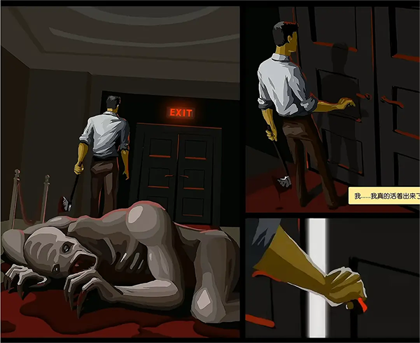 结局二:主角依旧是杀出重围,但是这次打开门后就不是楼顶了