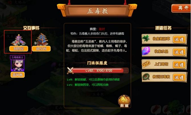 ⑤常做其他门派的派遣任务,可以增加与该门派的好感度,好感度可用于图纸兑换。