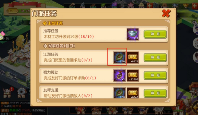 完成每日门派任务,也能提升侠客经验,提升门派的江湖声望。