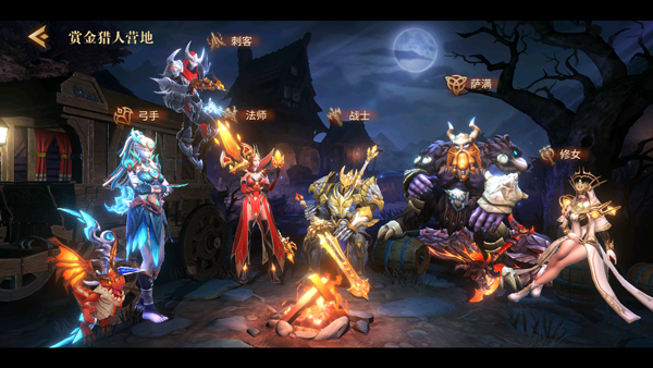 3、游戏内现有战士、刺客、法师、修女、弓手、萨满6种职业;