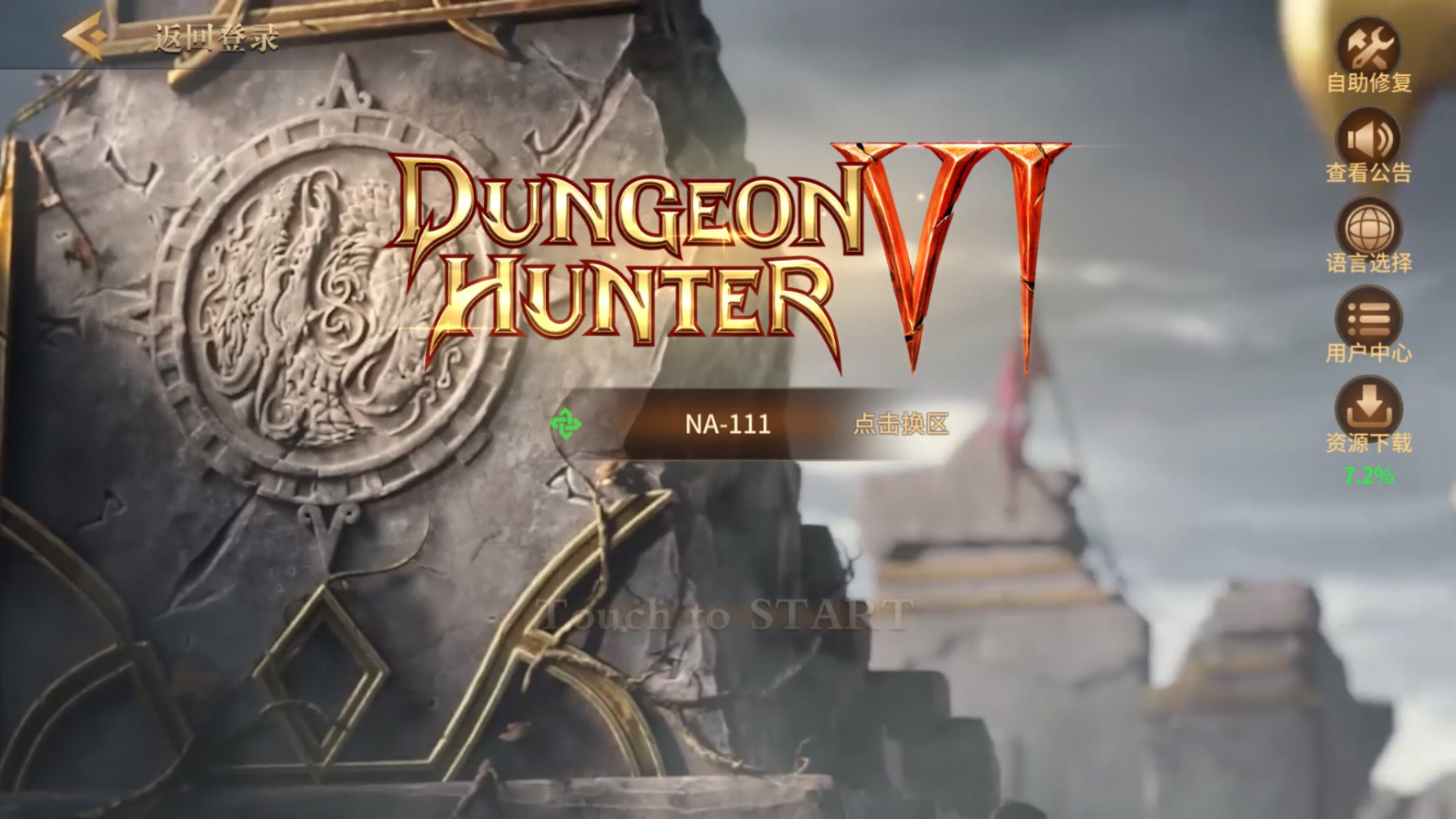 1、打开地牢猎手6官方版,点击换区,玩家可选择游戏服务器;