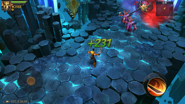 6、等待一会加载进入游戏,游戏采用横版操作,左手滑动摇杆移动,右手点击释放技能;