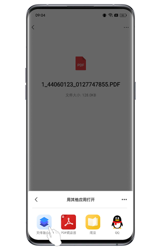 当您在钉钉、微信、文件管理等应用中点击word、pdf、CAD、key等格式的文件时,点击“其他应用打开”,选择“文件随心开”,即可使用此功能。