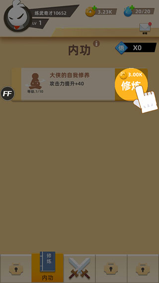 - 新内功需要悟性值进行参悟才可以开始修理。