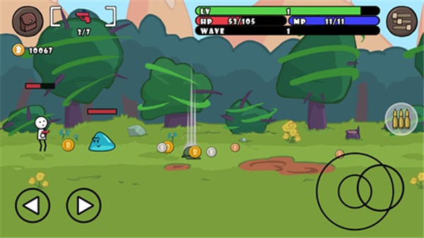 3、游戏中我们要用武器消灭所有敌人,随着时间流逝,敌人会越来越多,所以要通过走位来躲避危险,然后用武器尽快消灭它们。