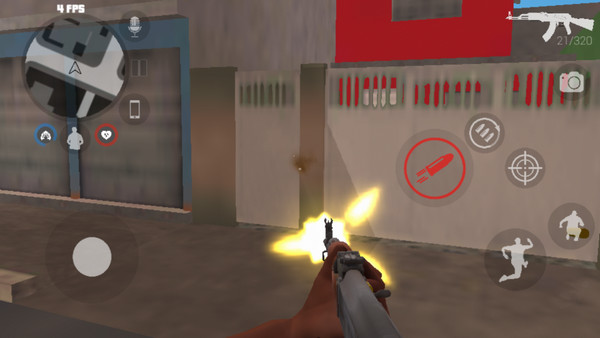 3、现在可以熟悉一下操作,拖动左边摇杆可以控制角色,右边有跑有蹲的按钮