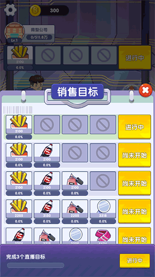 界面设计得很真实,像日常生活中带货一样,各种产品都能卖。还能签约网红,从低到高升级任务,角色设定也很自由,每天能为公司带来收益。更新日志里主要是修复bug和优化体验,挺用心的。