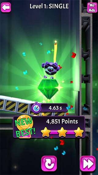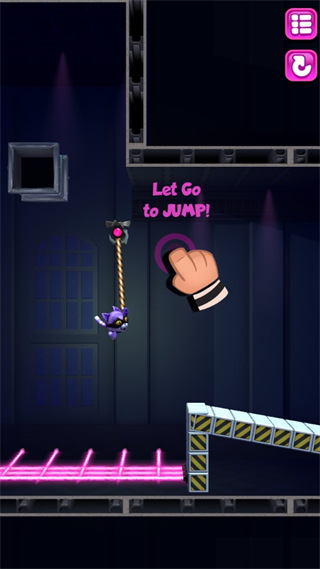 2、进入到游戏内玩法很简单,在这里我们要做的就是通过绳索摆荡来躲避关卡内陷阱从而偷走钻石