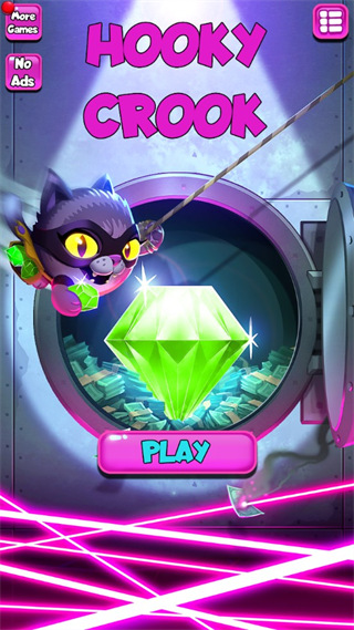 这款游戏叫盗宝大师,玩起来挺有趣的。你得操控一只怪盗猫咪,在各种关卡里荡绳子偷宝石。游戏一开始还挺简单的,但后面的关卡越来越难,障碍物也越来越多,得好好躲避才能过关。每个关卡都有独特的设计,有些甚至需要用到策略来解决。游戏的画面是手绘卡通风格,感觉很可爱,而且物理运动效果也很真实,让整个过程更有代入感。