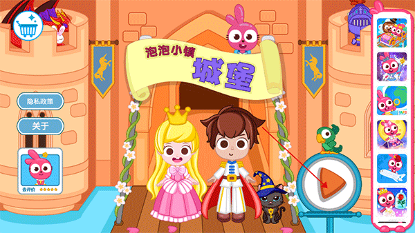 泡泡小镇城堡是一款专为儿童设计的休闲益智点击游戏,背景设定在一个充满魔法和冒险的城堡里。故事围绕公主、王子和女巫展开,玩家需要帮助王子解开谜题,让公主和王子重逢。游戏中,孩子们可以探索七个不同的场景,与各种角色互动,给角色换装,品尝美食,和动物一起玩,体验丰富的皇家生活。