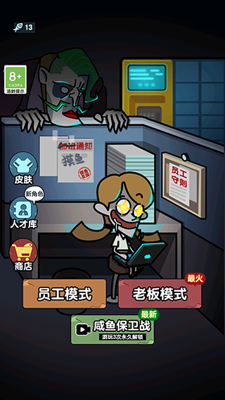 1、下载安装后打开游戏,可以选择成为员工或者是老板开始游戏。