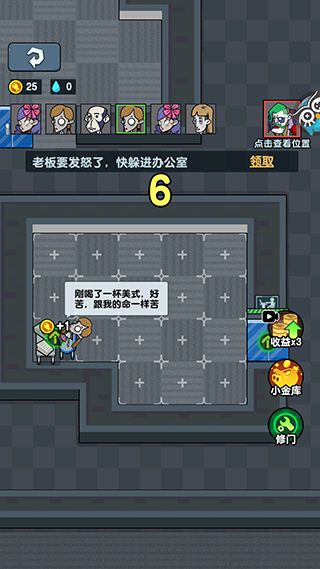 4、开上上机摸鱼以后,金币会一点点的增加,可以用来升级电脑和办公室的门。