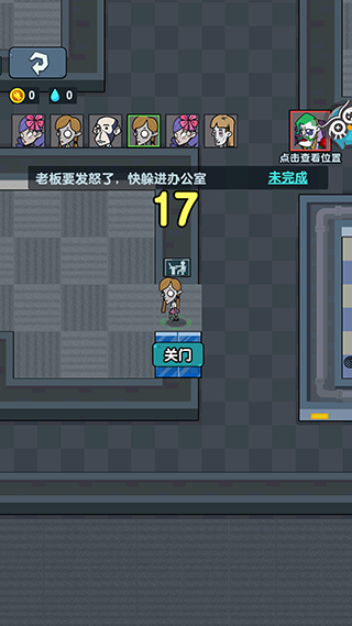 2、开局有30秒的倒计时,你需要在倒计时结束前找到一个办公室躺下摸鱼。