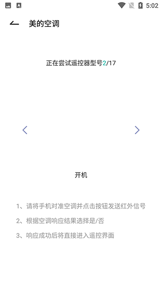 4、根据空调的响应结果选择是或者否,响应成功后将直接进入遥控界面。
