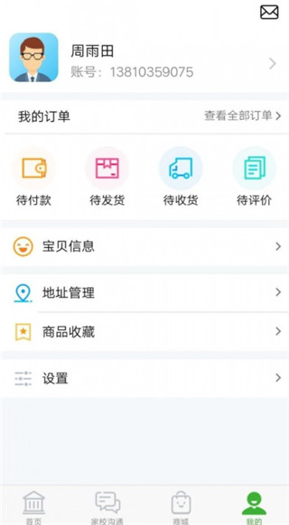 4、在【我的】界面,可以修改宝贝个人信息,还可以查看订单等等。