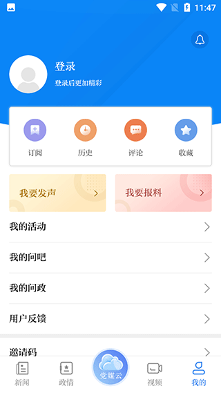 4、点击我的可以查看订阅新闻以及评论收藏等。