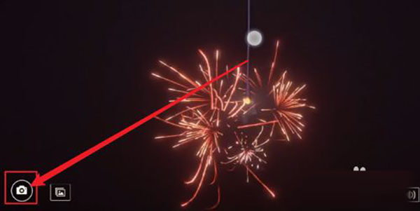 4、如图所示最后在界面左侧点击【拍照按钮】获得线香花火照片即可完成关卡